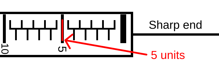 - Slowly draw 5 units into the needle. The 5-unit line is clearly marked with a heavy line and a "5" next to it.